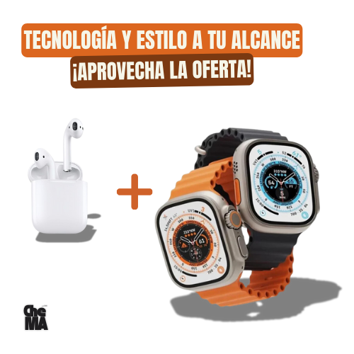 COMBO SMARTWATCH T800 Ultra + AIRPODS COMPATIBLE CON ANDROID Y IPHONE