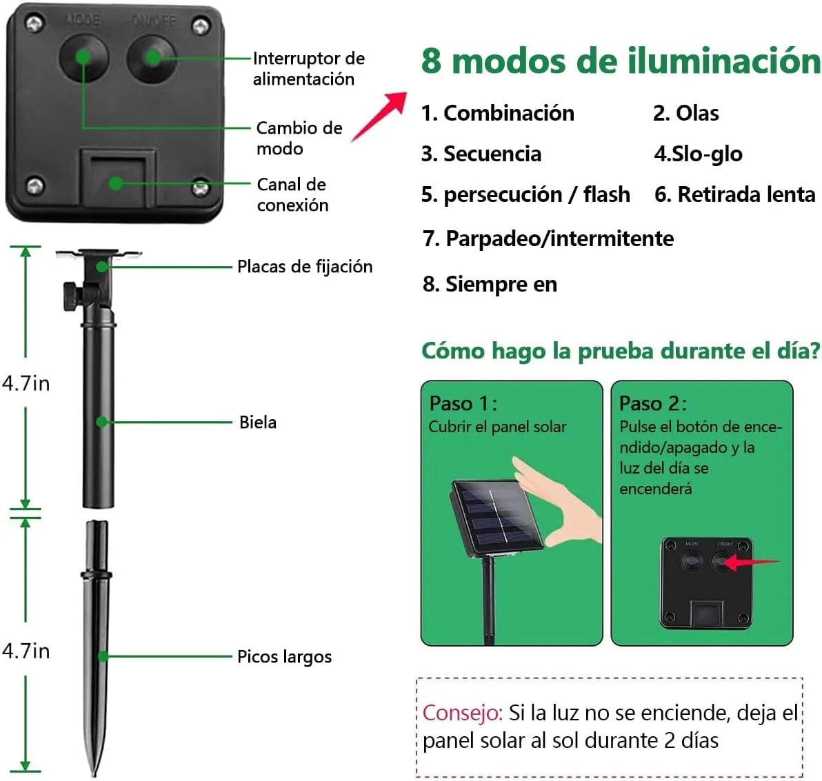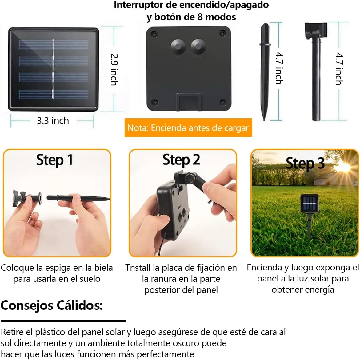 Eficiencia Energética : Diseñadas con un panel solar de alta eficiencia y una batería recargable, nuestras luces se cargan durante el día y funcionan hasta 8 horas por la noche. Disfruta de una decoración deslumbrante sin preocuparte por el consumo de energía.